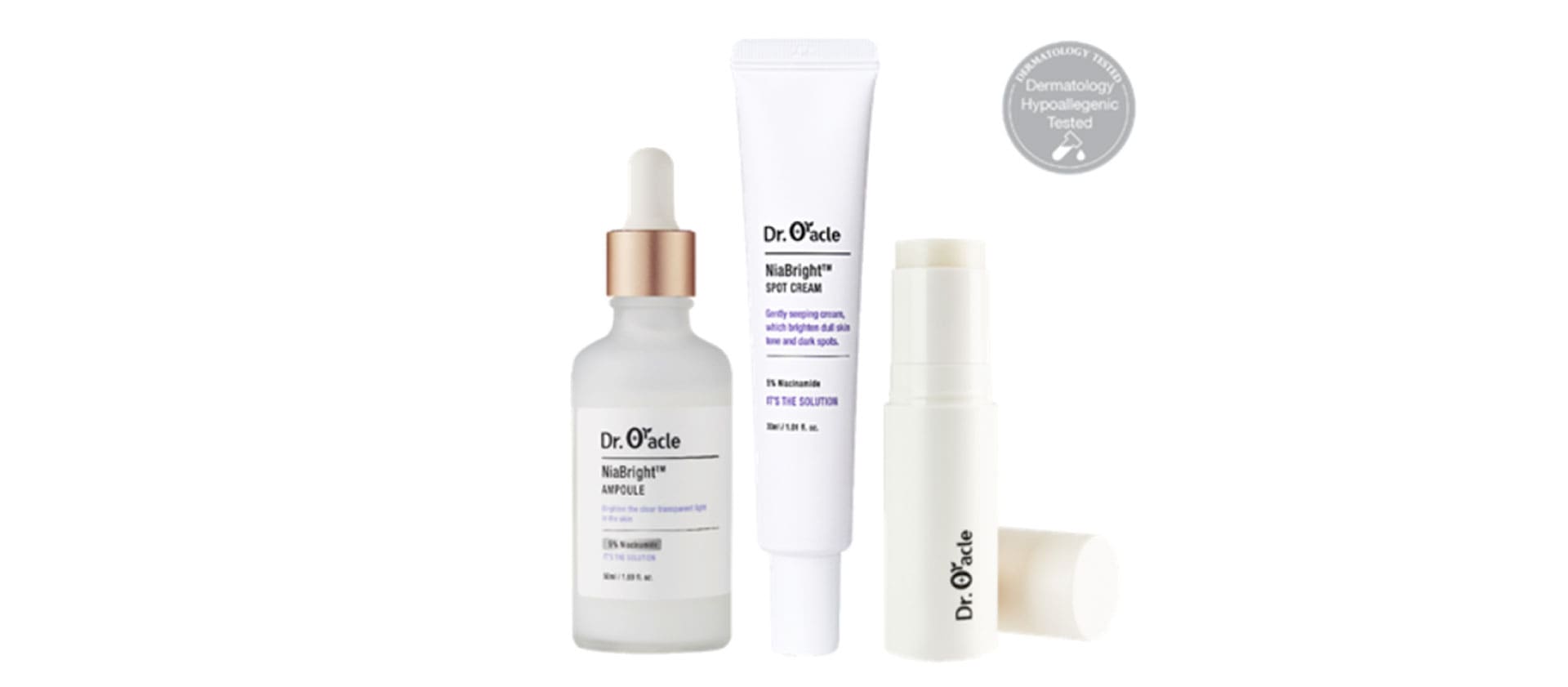 Línea de producto formulada con Niacinamida aprobada por el Ministerio de Seguridad Alimentaria y Farmacéutica de Corea, acompañada de un conjunto de ingredientes aclarantes que impulsan la luminosidad, vitalidad e hidratación de la piel